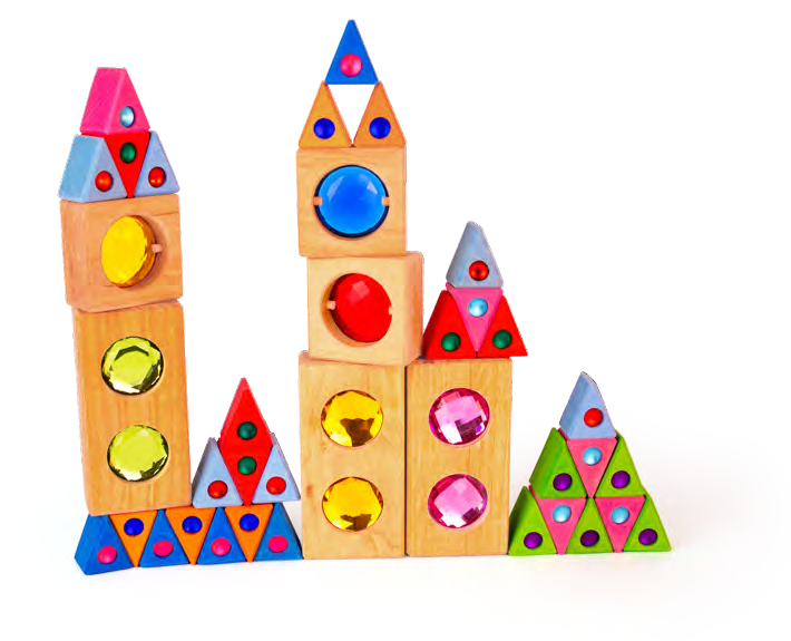 ✨ Die Bauspiel Sammlerbox bringt Glanz und Farbe in jede Spielecke! Mit funkelnden Dreiecken, Facettenbausteinen mit durchscheinenden Fenstern und Holzquadern mit Glitzersteinen bietet sie eine kreative Vielfalt. Die 36 Teile im stabilen Holzrahmen aus Erlenholz lassen sich wunderbar mit anderen Sets kombinieren. 🌟🔺🟦