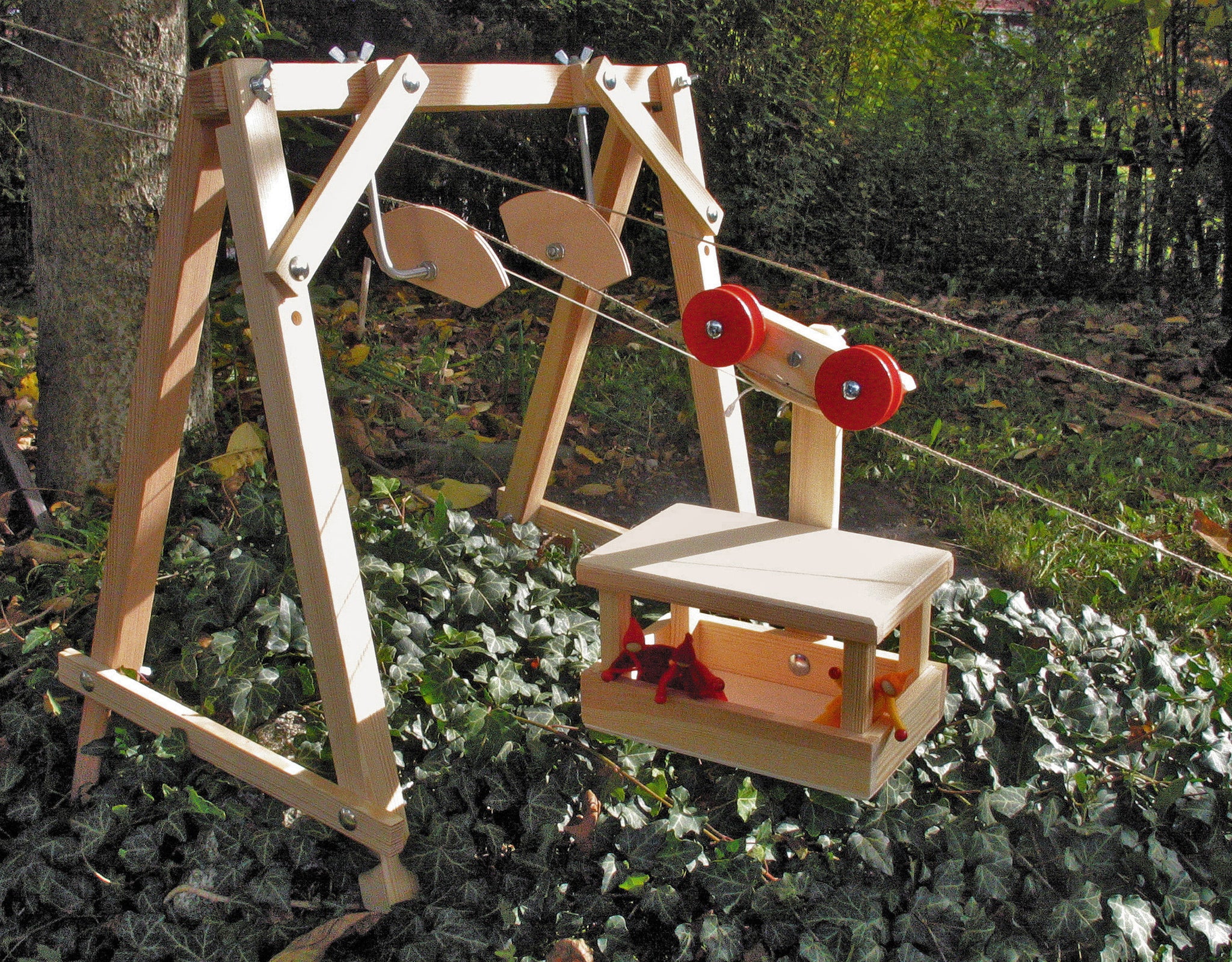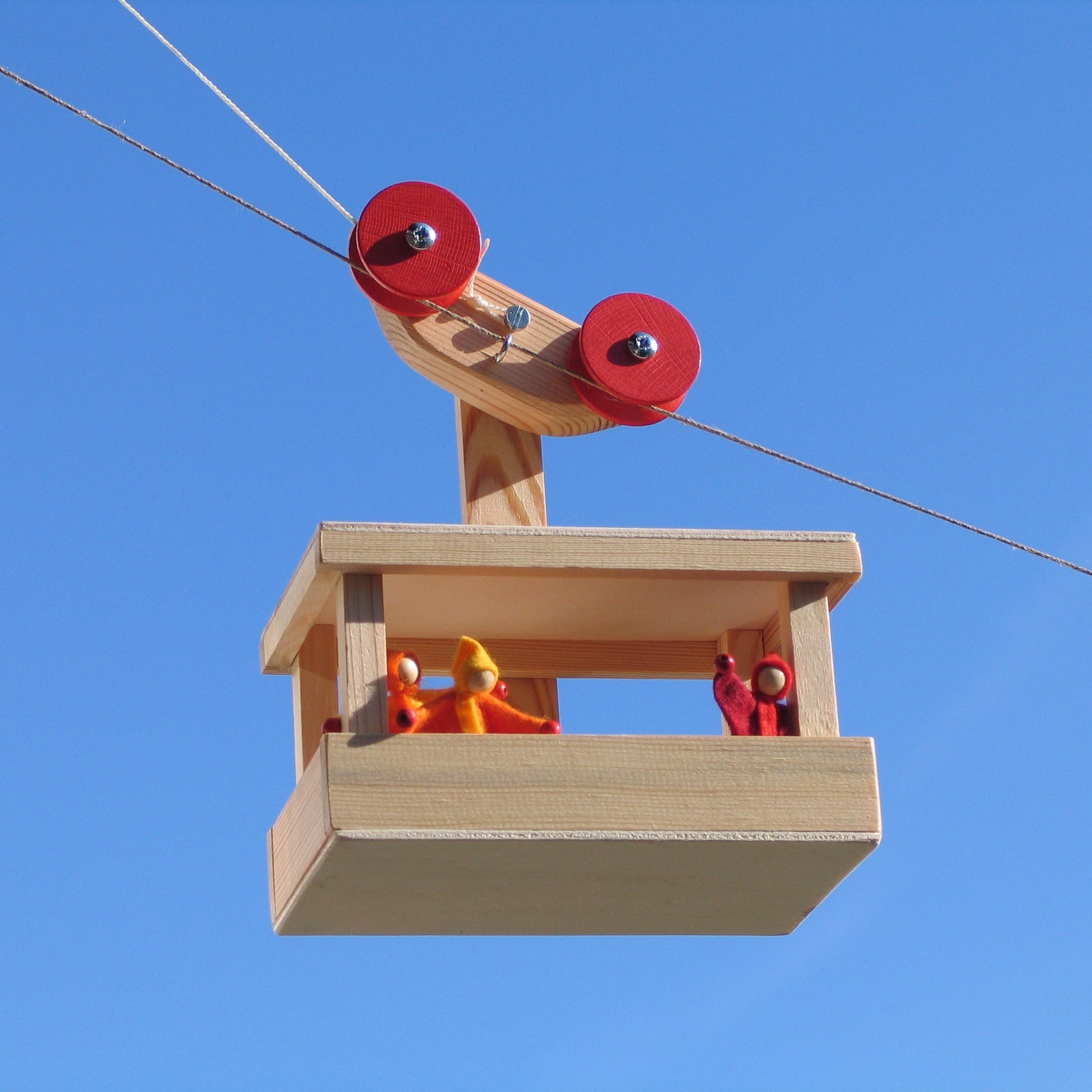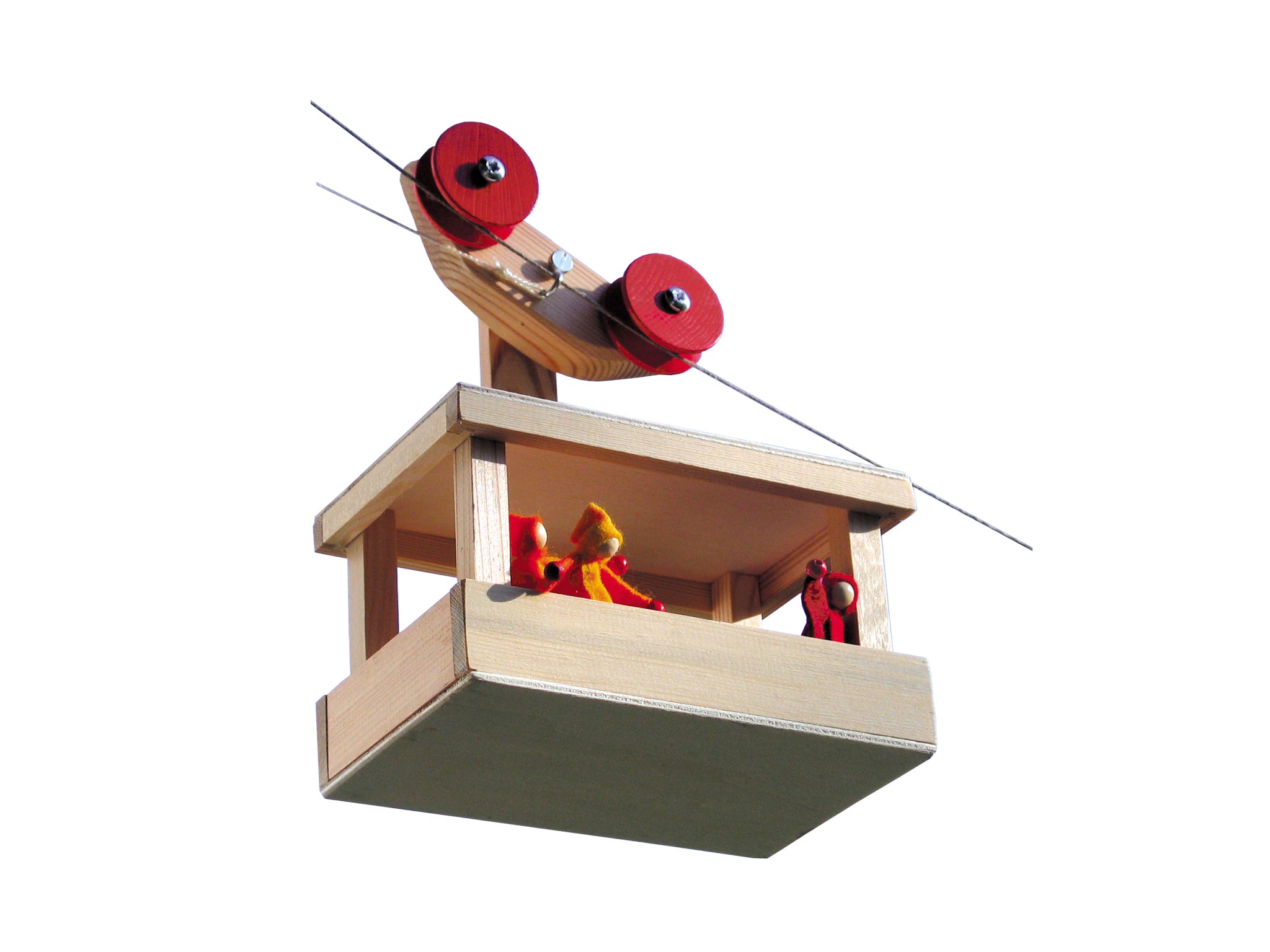 Auf- und Ab-Abenteuer für kleine Entdecker! Eine einzelne Gondel fährt hoch und runter. Ein Zugseil zieht sie nach oben, die Fahrt nach unten läuft kontrolliert ab – ideal, um Puppen, Tiere oder Bauklötze sicher zwischen Berg- und Talstation zu transportieren. 🏔️🎠Püppchen nicht enthalten.
